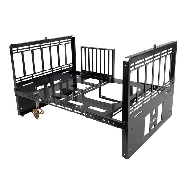 - 親和産業 長尾製作所 3wayオープンフレーム スタック式 SS-NFRAME-STACK 黒色(塗装) 対応マザーボード:mini-ITX ・mini-DTX・micro-ATX・ATX・E-ATX ※E-ATXは大型サイズ(ワークステーション向け305×330mm等)が一部ネジ止めできない場合がございます。 対応ドライブ:2.5インチ 最大4台/3.5インチ 1台(片側止め)、拡張スロット数:8スロット、対応電源:ATX電源 1台 対応ラジエーター:120 / 140 / 240 / 280 / 360 / 420mm 電源スイッチ:有り(LED付電源スイッチ) 寸法:約 横幅385mm × 奥行335mm × 高さ275mm(横置き最小時)、重量:約 3.5kg、材質:1.6mm厚 スチール ■スタック式オープンフレーム:PCパーツを全面に押し出すオープン型にすることで実用的かつ、パーツの造形美やライティングを楽しむことをコンセプトにしたオープンフレーム型PCケースです。自在なシステム構成を可能にし、検証台としてもご使用頂けます。 ■3wayでの自在な設置が可能:横置き、縦置き、スタックに対応した3wayでの自在な設置が可能です。ベンチテーブル型の横置きに加えて、ディスプレイフレーム型の縦置きコンパクト設置が可能なスタック型としてもご使用頂けます。 ※ スタックする場合は横置きでの設置のみとなります。 ■2wayスタック方法を採用:積み重ねが可能な2wayスタック式で取り外しを容易にしたスタック方法とネジ固定でガッチリと固定するスタック方法を選択できます。 ■マザーボードの設置向きの変更可能:マザーボードの設置向きも変更可能で構成に合わせた配置を選択できます。 ■サイズ調整用スライドレールを採用:フレームサイズはスライド調整式でパーツ構成に合わせてサイズを選択することが可能です。 ※最小幅:約385mm/最大幅:535mm 調整幅は15mmピッチでサイズ変更が可能。 ■ATX電源の取付位置が変更可能:ATX電源はパーツ構成に合わせて取付位置の変更することが可能です。 ■ATX電源用にケーブルホルダーを搭載:ATX電源用にケーブルホルダーを搭載し、ガッチリとケーブルを固定することで電源のぐらつきを効果的に抑えます。ケーブルホルダーは再利用が可能です。 ■USBポート取付穴を搭載:拡張用のUSBポート取付穴を両側面に2箇所搭載しています。 ※USBポートは別売りになります。 ■日本国内一貫生産!!:企画 ■設計 ■製造 ■梱包までの一連の過程をすべて日本国内で行う、正真正銘の国産品です。すべての製品に「一品入魂」の思いを込めて、手作業で丁寧に仕上げます。 商品コード62078380977商品名親和産業 長尾製作所 3wayオープンフレーム スタック式 SS-NFRAME-STACK 黒色(塗装)型番SS-NFRAME-STACKカラー黒色(塗装)※他モールでも併売しているため、タイミングによって在庫切れの可能性がございます。その際は、別途ご連絡させていただきます。※他モールでも併売しているため、タイミングによって在庫切れの可能性がございます。その際は、別途ご連絡させていただきます。