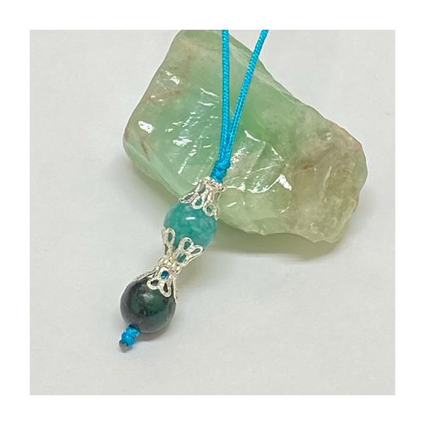 願い事ストラップ・アマゾナイト&クリソコラ(開運:幸運のお守り)