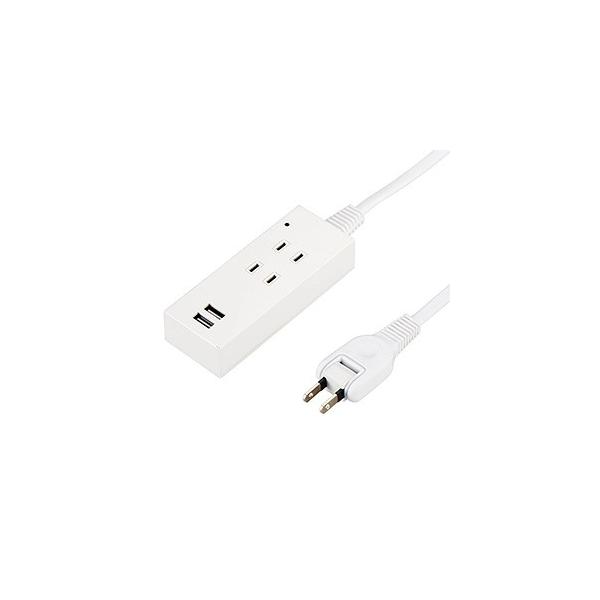 電材堂 雷ガード付タップ 2個口+USB2ポート USB出力最大2.1A コード長2.5m K4025WH2UDNZ
