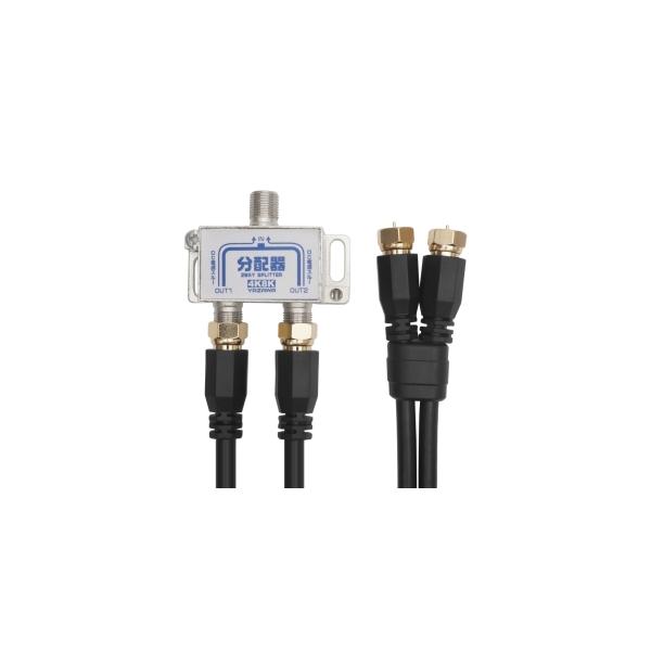 電材堂 アンテナ分配器 OUT1M×2本 ケーブル付黒 ATB2SP340BKDNZ
