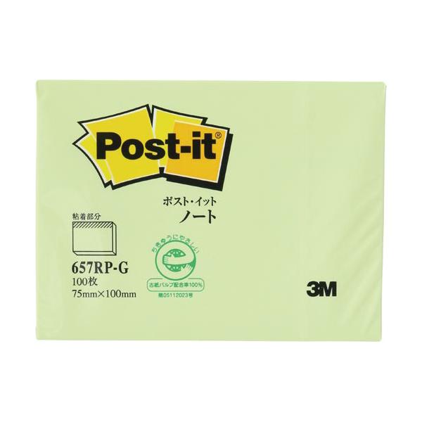 付箋 スリーエム ジャパン ポスト・イット再生紙ノート 75×100mm 100枚 グリーン 657RP-G
