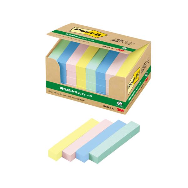 - 北海道・沖縄・離島へのお届けは別途送料がかかります。詳しくはこちらお得なセット販売特徴:古紙100%の再生紙を使用。環境保全を考え、資源をムダなく利用しています。たっぷり入ってお値段もお得。サイズ、カラーなども豊富にそろえました。オフィスでの買い置きにおすすめのポスト・イット(R)製品です。商品仕様:◆再生紙ふせんハーフ◆サイズ:75×12.5mm◆入数:100枚×40パッド◆材質:本体:古紙100%の再生紙、粘着剤:水分散性粘着剤、紙箱:古紙90%以上の再生紙◆パッケージサイズ:W10.4×D7.9×H5.6cm◆パッケージ重量:350gA characteristic: I use the regenerated paper of 100% of wastepaper. I think about environmental conservation and use resources without waste. I fully enter, and the price is advantageous, too. I prepared size, the color abundantly. It is recommended post イット (R) product to the stock of goods in the office. Product specifications: ◆Regenerated paper tag half ◆ size: 75*12.5mm ◆ number containing: 100 pieces of *40 pads ◆Materials: The body: Regenerated paper, the adhesive of 100% of wastepaper: A water-dispersable adhesive, a paper box: Having more than 90% of wastepaper regenerated paper ◆Package size: W10 .4* D7 .9* H5 .6cm ◆Package weight: 350 gスリーエム ポストイット通常粘着製品パワーパック ふせんハーフ 混色 75mm×12.5mm 100枚×40パッド 5602-K ふせん 付箋 お得パック ポストイット】