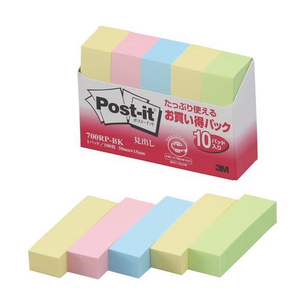 - 北海道・沖縄・離島へのお届けは別途送料がかかります。詳しくはこちらお得なセット販売特徴:古紙100%の再生紙を使用。環境保全を考え、資源をムダなく利用しています。たっぷり入ってお値段もお得。サイズ、カラーなども豊富にそろえました。オフィスでの買い置きにおすすめのポスト・イット(R)製品です。商品仕様:◆再生紙見出し◆入数:100枚×10パッド◆材質:本体:古紙100%の再生紙、粘着剤:水分散性粘着剤◆本体サイズ:50×15mm◆パッケージサイズ:W7.7×D2.2×H5.1cm◆パッケージ重量:60gA characteristic: I use the regenerated paper of 100% of wastepaper. I think about environmental conservation and use resources without waste. I fully enter, and the price is advantageous, too. I prepared size, the color abundantly. It is recommended post イット (R) product to the stock of goods in the office. Product specifications: ◆Regenerated paper entry ◆ number containing: 100 pieces of *10 pads ◆Materials: The body: Regenerated paper, the adhesive of 100% of wastepaper: Water-dispersable adhesive ◆Body size: 50*15mm ◆Package size: W7 .7* D2 .2* H5 .1cm ◆Package weight: 60 gスリーエム ポストイット通常粘着製品 見出し 混色 50mm×15mm 100枚×10パッド 700RP-BK ふせん 付箋 ポストイット】
