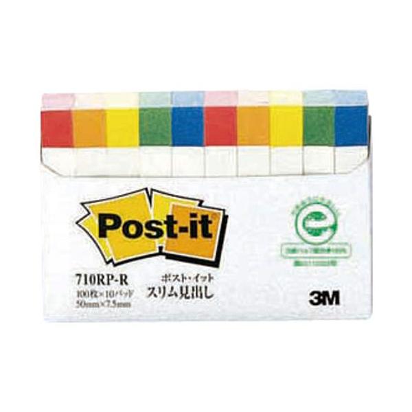 付箋 スリーエム ジャパン ポスト・イット再生紙スリム見出し 50×7.5 100枚×10 レインボー 710RP-R