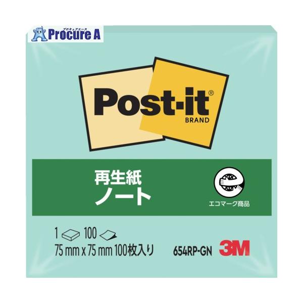 3M ポスト・イット 75X75mm 100枚 グリーン ▼108-8234 654RP-GN 1パック