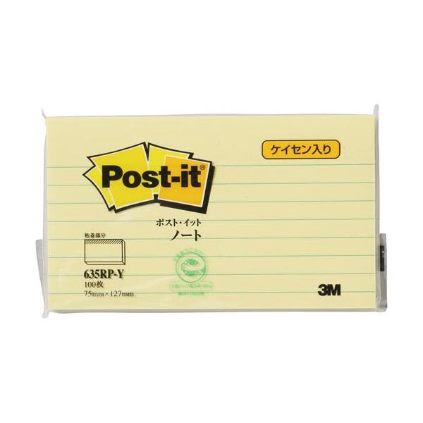 付箋 スリーエム ジャパン ポスト・イット 再生紙ノート 罫線入り 75x127mm 100枚 イエロー 635RP-Y