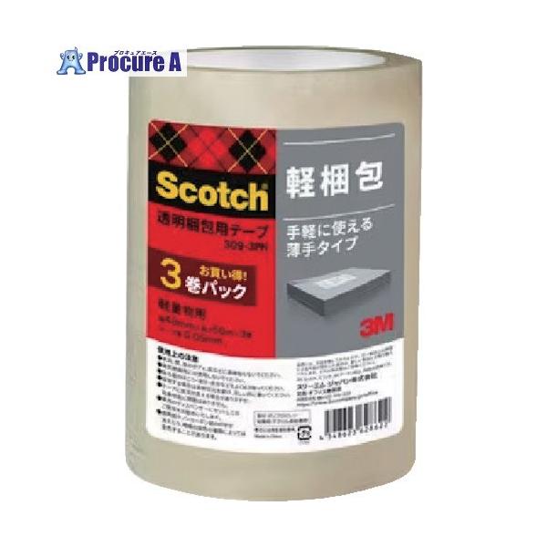 3M 透明梱包用テープ 48mmX50m 3巻パック 軽量物用 ▼394-0667 309-3PN 1パック