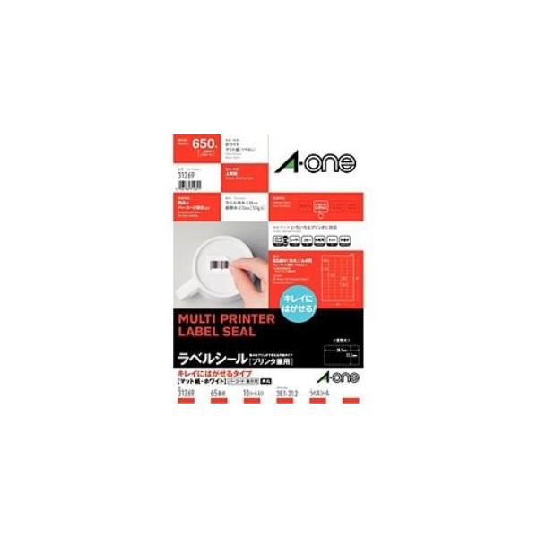 - エーワン ラベルシール[プリンタ兼用] キレイにはがせるタイプ A4判65面 四辺余白付角丸 10シート(650片) 31269 119