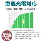 最大15W の充電に対応、本体に直結したケーブル先端のUSB-TypeCのコネクタから充電でき、USB-PDに対応したUSB電源アダプタに接続すると 急速 充電 可能です。