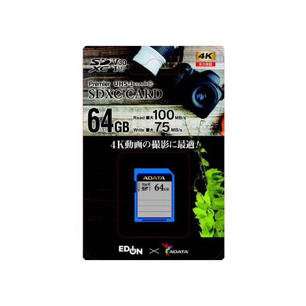 【お取り寄せ】A-DATA SDXCカード 64GB Class10 UHS-1 U3 V30 SD SDHCメモリーカード メモリーカード 記録メディア 家電