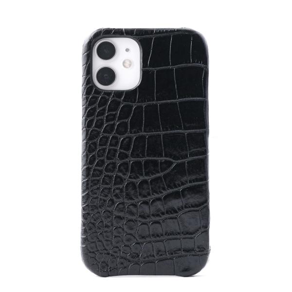 iPhone 12 / 12Pro イタリアンレザー クロコバックカバーケース ブラック 仕入先在庫品