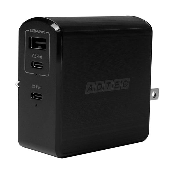 - メーカー:アドテック 品番:APD-A105AC2-BK 高効率・高耐久性を誇るGaN(窒化ガリウム)を採用し、コンパクトなボディーに最大105W(合計)の高出力タイプ
