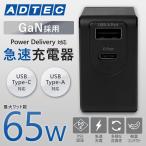 アドテック PD充電器 65W 2ポート【eMarker/マルチプラグケーブル付属】【USB-Cx2+USB-A】【GaN (窒化ガリウム) 】ブラック/APD-A065AC-wM-BK