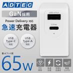 アドテック PD充電器 65W 2ポート【eMarker/マルチプラグケーブル付属】【USB-Cx2+USB-A】【GaN (窒化ガリウム) 】ホワイト/APD-A065AC-wM-WH