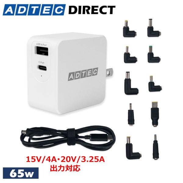 - 商品情報製品名Power Delivery 対応 65W PD急速充電器 ノートパソコン用マルチプラグケーブルセット型番APD-A065AC-wM-WH(ホワイト)APD-A065AC-wM-BK(ブラック)JAN49465160962044946516096198メーカー名ADTEC(アドテック)【65W PD急速充電器】 <最大出力電力>65W(合計)<出力電圧>・Type-C: 5V/9V/12V/15V/20V・Type-A: 5V<最大出力電流>・Type-C5V時:3.0A / 9V時:3.0A / 12V時:3.0A /15V時:4.0A(3.0A※) /20V時:3.25A(2.25A※)・Type-A:5V時2.4A※Type-Aポート同時使用時。最大出力電力を超えての使用はできません。<入力/Input>AC100-240V 50/60Hz<外形寸法>50.0(W)×51.0(D)×29.0(H)mm<重量>約100g<使用温度範囲>0 〜 35℃【ノートパソコン用 マルチプラグケーブル】<最大出力電圧>15V〜16V / 19V〜20V<最大出力電流・電力>5A(最大) / 90W(最大)<入力端子>Type-C (PD充電器 Type-C 60W(20V/3A・15V/4A)以上 対応)<使用温度範囲>-10度〜+45度<重量>約30g (ケーブル本体)<付属品>変換コネクタ 10種商品説明【65W PD急速充電器】20V時最大3.25A(65W)に対応し、最新型のiPad ProやiPhone,Mac Book Proやパソコンなどの高速充電が可能です。・GaN (窒化ガリウム)対応高効率・高耐久性を誇るGaN (窒化ガリウム)を採用する事でコンパクトなボディーに65Wの高出力を実現!! ・逆挿し防止コネクタAポートに逆挿し防止コネクタを採用する事でコネクタの向きを気にせず簡単に接続する事が可能です。・多様な互換性iPhone 12 Pro Max/Mini /11/10/XR/8/MacBook Pro 13/iPad Pro/Nintendo Switchなど多くのデバイスで使用可能。【ノートパソコン用 マルチプラグケーブル】10種類の変換コネクタがセットになった USB Type-C から DC への変換ケーブルです。・10種類の変換コネクタがセット主要なノートパソコンに対応した 10種類の変換コネクタがセットになっております。Power Delivery 対応 65W PD急速充電器 マルチプラグケーブルセット APD-A065AC-wM アドテック【GaN (窒化ガリウム) ACアダプター USBポート 急速充電 Type-C Type-A 変換コネクタ 充電ケーブル ノートPC】 65W出力対応PD充電器とノートパソコン用マルチプラグケーブルのセット商品 【65W PD急速充電器】20V時最大3.25A(65W)に対応し、最新型のiPad ProやiPhone,Mac Book Proやパソコンなどの高速充電が可能です。・GaN (窒化ガリウム)対応高効率・高耐久性を誇るGaN (窒化ガリウム)を採用する事でコンパクトなボディーに65Wの高出力を実現!! ・逆挿し防止コネクタAポートに逆挿し防止コネクタを採用する事でコネクタの向きを気にせず簡単に接続する事が可能です。・多様な互換性iPhone 12 Pro Max/Mini /11/10/XR/8/MacBook Pro 13/iPad Pro/Nintendo Switchなど多くのデバイスで使用可能。【ノートパソコン用 マルチプラグケーブル】10種類の変換コネクタがセットになった USB Type-C から DC への変換ケーブルです。・10種類の変換コネクタがセット主要なノートパソコンに対応した 10種類の変換コネクタがセットになっております。 10