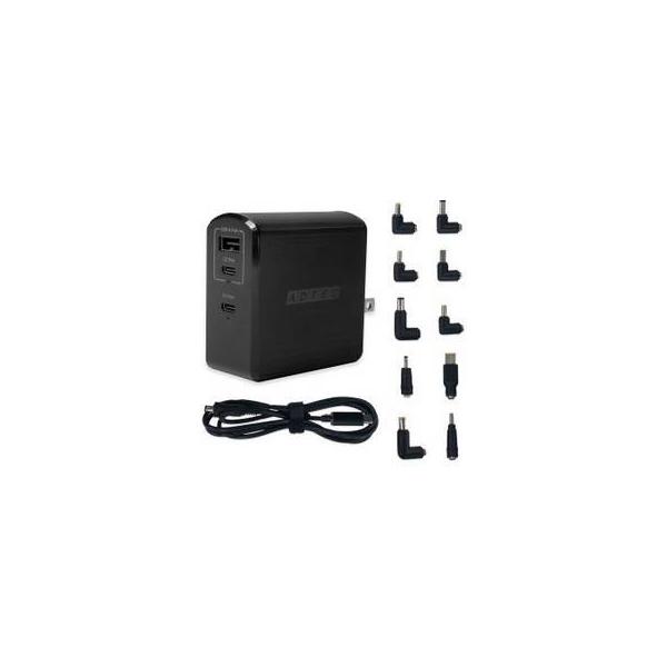 - 商品説明【充電器本体】★ 105W出力対応の「APD-A105AC2-BK/WH」は高効率・高耐久性を誇るGaN (窒化ガリウム)を採用する事でコンパクトなボディーに最大105W (合計) の高出力を実現しております。単一最大出力100W (20Vx5A) にも対応しており、MacBookProにも余裕に対応可能!!★ GaN (窒化ガリウム) 採用 (105W・65Wシリーズ)高効率・高耐久性を誇るGaN (窒化ガリウム)を採用する事でコンパクトなボディーを実現。コンパクトながら、ノートパソコンなど高出力が必要な機器の接続が行えます。※APD-A105AC2/A065ACシリーズのみ ※接続機器の要求仕様をご確認下さい。★ 手の中に納まるほどコンパクトノートパソコンの使用出来る高出力な65Wモデルでもサイズが天地左右約5cm!一般的なのノートパソコン約半分程度のサイズとなります。※メーカー調べ★ 逆挿し防止コネクタ (105W・65Wシリーズ)Type-A ポートに逆挿し防止コネクタを採用する事で、コネクタの向きを気にせず簡単に接続する事が可能です。※APD-A105AC2/A065ACシリーズのみ★ 折り畳み式プラグ持ち運びに便利な折り畳み式プラグを採用。プラグを収納する事でコンパクトになり、同時に持ち運ぶものを傷つけ難い設計となっております。★ RoHS指令に対応EU圏での有害物質の使用規制であるRoHS指令に対応。【マルチプラグケーブル APC-A090CM】★ 10種類の変換コネクタがセット。★ 主要なノートパソコンに対応した 10種類の変換コネクタがセットになっております。★ コネクタTYPE | サイズ外径x内径(mm) | 主な対応メーカー の順・D1 | 6.5 x 4.4 Pin1.4 | SONY / 富士通・D2 | 6.3 x 3.0 | 東芝 / NEC・D3 | 5.5 x 2.5 | Panasonic / ASUS / 東芝 / ACER / HP / Lenovo / Mouse / UNITCOM・M | 11 x 5.0 | Lenovo・O | 4.5 x 3.0 Pin0.6 | HP / ASUS / Dell・G | 4.0 x 1.7 | ASUS・D5 | 5.5 x 1.7 | ACER / BenQ / SONY・D6 | 4.75 x 1.7 | SAMSUNG / ASUS / HP / NEC / Compaq・D9 | 7.4 x 5.0 Pin0.6 | HP / Dell・D12 | 7.9 x 5.5 Pin0.9 | IBM / Lenovo※本製品は汎用品となりますので、すべてのノートパソコンの動作を保証するものではございません。※接続可能な機器であっても、相性、個体差などで正常動作しない場合がございます。※本製品を使用して、動作不良が発生した場合でもメーカーは責任を負いません。※本製品を使用する場合はPD充電器60W(20V/3A・15V/4A)以上のものをご使用ください。※複数ポートがあるPD充電器の場合同時使用時に出力が低下するものが御座いますので単独でご使用ください。※接続する機器のメーカーによっては、純正品以外の充電器を使用した場合、保証対象外となることがあります。※取り付け作業において、接続する機器本体または本製品が損傷した場合は、メーカーでは一切保証致しません。※本製品には PD充電器は付属しておりません。メーカーAPD-A105AC2/APD-A065ACでの使用を推奨しております。※PD充電器及び機器より、接続後15秒から30秒程度電圧調整が行われる場合があります。その際、2〜3回電源の瞬停が発生しますが故障ではございません。スペック* 入力端子:USB Type-C、Type-A* 電圧:105Wタイプ・Type-C:5V/9V/12V/15V/20V・Type-A:5V/9V* 使用温度範囲:0 〜 35℃* 外形寸法:105Wタイプ:105Wタイプ:65.0(W)×65.0(D)×31.0(H)mm* 重量:105Wタイプ:約185g* 付属品:無* 準拠規格:RoHS指令対応、PSE* 生産国:中国