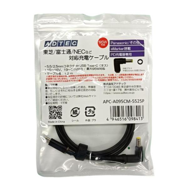 レッツノート対応充電ケーブル APC-A095CM-5525P PD充電器 Pnasonic 15V〜16V,19V〜21V対応 eMarker搭載 1.2m 95W対応(USB Type-C/5.5mm-2.5mmコネクタ)