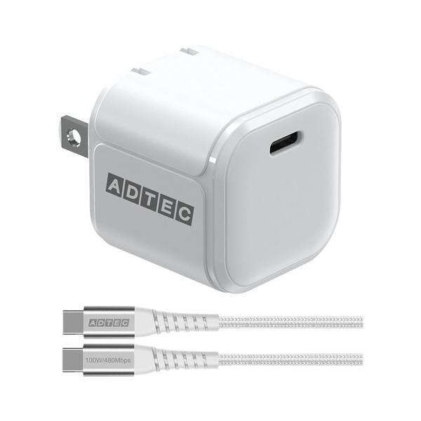 アドテック PowerDelivery対応 GaN AC充電器 ケーブル付 45W ホワイト APD−V045C−wC−WH