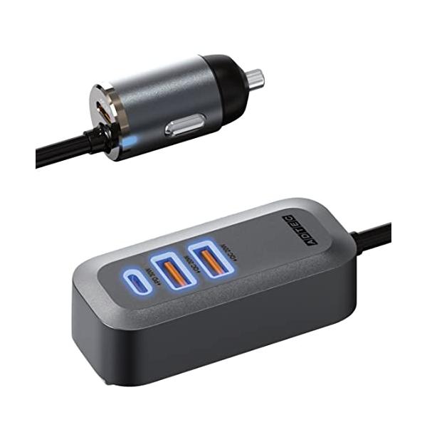 アドテック カーチャージャー 100W 前席 + 後部座席 4ポート セパレートタイプ 延長ケーブル 1.5m USB-C × 2 USB-