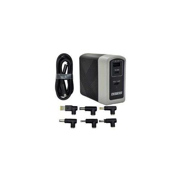 ADTEC アドテック 140W出力GaN搭載 USB-C PD3.1充電器+マルチプラグProケーブルセット APD-A140AC2-wMPro-BK ブラック