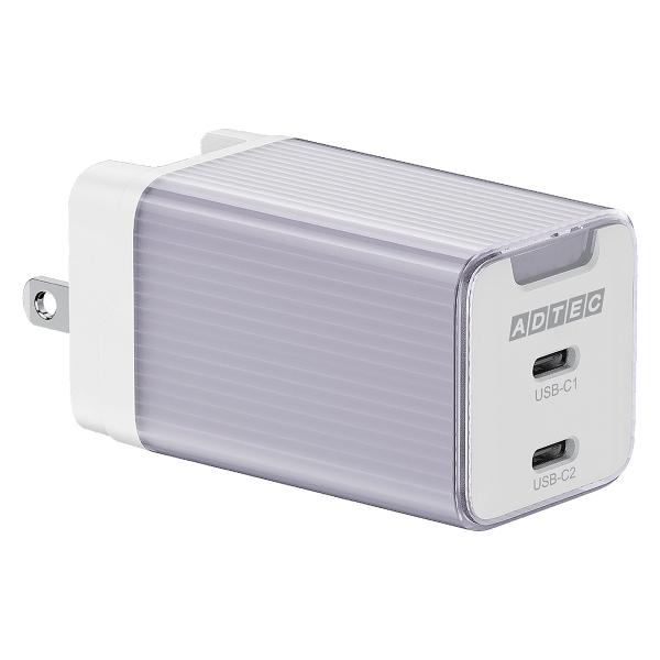ADTEC アドテック 65W出力対応PD充電器 Type-C×2ポート スイング収納対応プラグ APD-V065C2-PU パープル