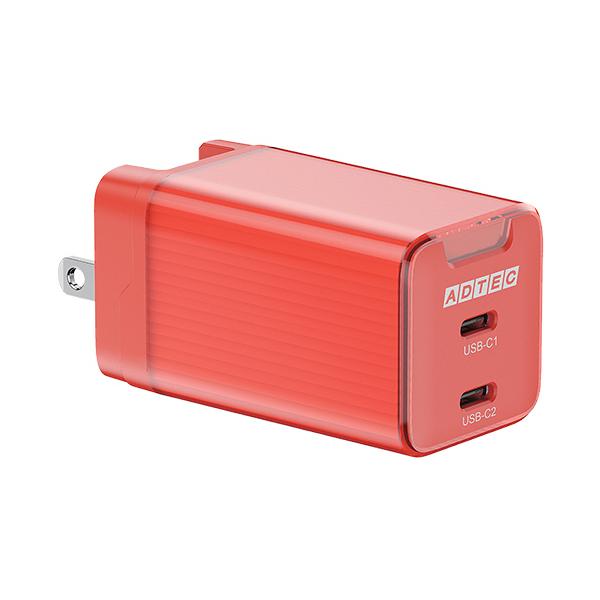 アドテック PD対応 AC充電器 GaN USB Type−C 2ポート 65W レッド APD−V065C2−RD 1個