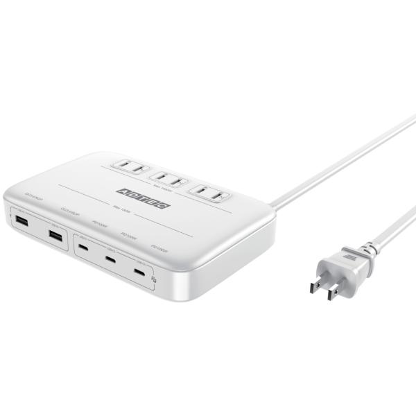 ADTEC アドテック 130W対応 PD対応卓上AC電源タップ ホワイト APDT-V130A2C3-WH