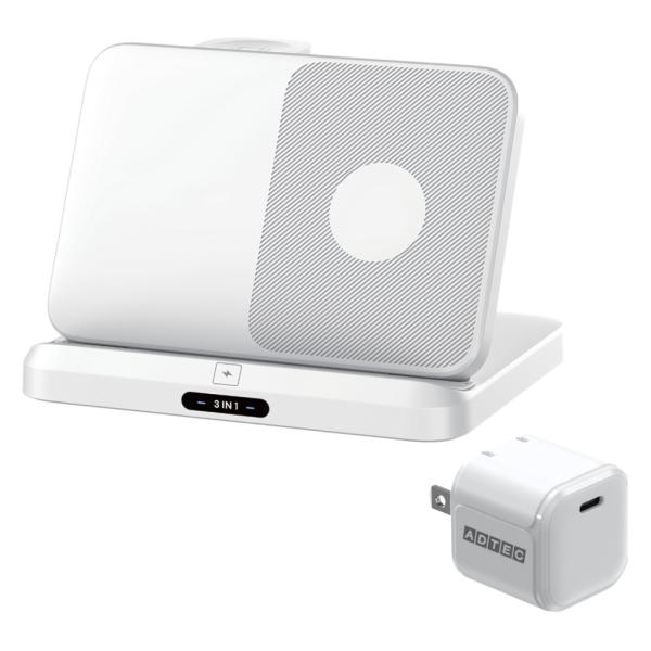 ADTEC アドテック 卓上 ワイヤレス充電スタンド 3in1 スマホ・イヤホン・ウォッチ&PD充電器 33Wセット AWPD-V015WEW/AS-w33W
