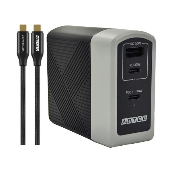 Power Delivery 3.1対応 GaN AC充電器/140W/USB Type-C 2ポート Type-A 1ポート/ブラック & to Cケーブルセッ...