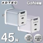 APD-V045C2-PU-SC10U2 パープル パステル カラー 45W 2ポート PD充電器 シリコン製Cケーブル(100W/eMarker)【USB-Cx2】【PD3.0/GaN/PPS 3.3V-11V】アドテック