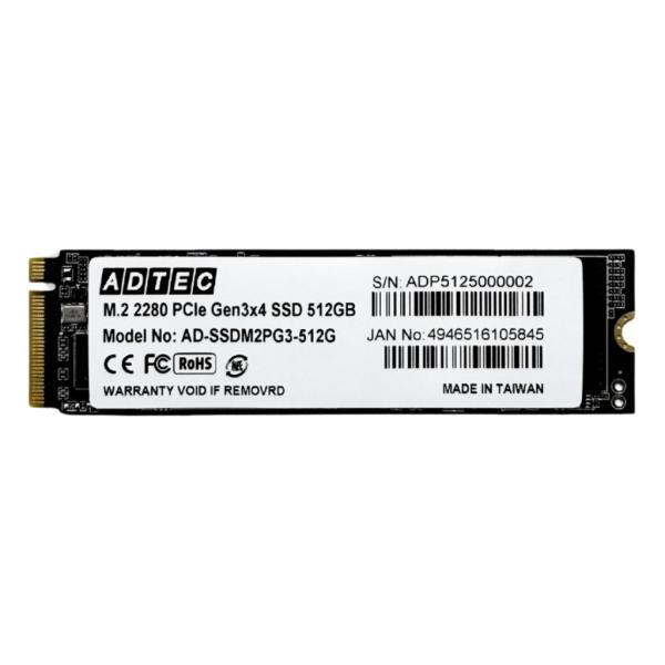 ADTEC アドテック AD-SSDM2PG3-512G 3D NAND PC内蔵用M.2 Gen3x4 SSD M.2 NVMe PCIe Gen3x4(2280)AD-SSDM2PG3 512GB