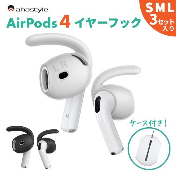 AirPods 4 イヤーピース フック 3セット イヤホンカバー エアーポッズ 4 落下防止 イヤホン 防止 ランニング ケース付属 シリコン ホワイト ブラック 白 黒