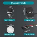 - パソコン本体から離れて、手元でパソコンの電源操作ができます。メカニカルキーボードのボタンを使用。■パソコン本体から離れて、手元でパソコンの電源操作ができます。■スイッチはメカニカルキーボードと同様の構造で、心地よい打鍵感を味わえます。■分岐コネクタが付属しているので、パソコン本体側の電源スイッチ/LEDも使えます。■マザーボードから電源LEDを延長でき、電源オン時に内部のブルーLEDが光ります。■底面にマグネットを内蔵しているので、任意のマグネット対応面に設置できます。マグネット非対応面には、付属の両面テープ付き金属板を貼って設置できます。