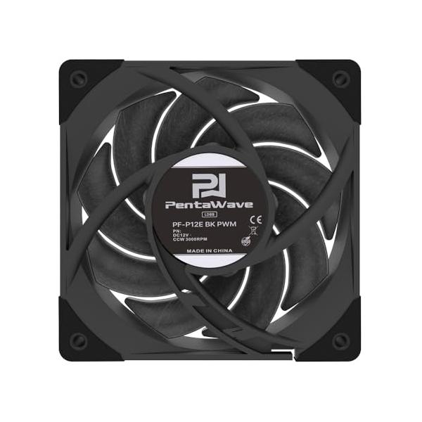 - PentaWave 精密機器用のデュアルボールベアリングを使用したハイエンドファン ▼サイズ:12cm ▼(最大)ファン回転数:3000rpm ▼LED:LED非搭載 ▼フレームカラー:ブラック系 ▼接続方式:4pin (PWMファン)精密機器用のデュアルボールベアリングを使用したハイエンドファン■ サイズ:12cm■ (最大)ファン回転数:3000rpm■ LED:LED非搭載■ フレームカラー:ブラック系■ 接続方式:4pin (PWMファン)★ 超高耐久軸受を搭載した、大風量・高静圧タイプのケース用120mm角ファンです★ 大風量・高静圧仕様で、より内部パーツに風を当て、冷やします。★ 日本製のNSK 693Aベアリングを搭載しています。ドローン、医療機器などの精密機器に幅広く使われるベアリングです★ 純銅製のベアリングフレームとデュアルボールベアリングで、20万時間以上の耐久性を実現してます。(メーカーによる計測と計算値であり、保証期間ではありません。)★ ファンブレードは液晶ポリマー (LCP) 製で、高い寸法精度と優れた難燃性を備えています。高回転・高温環境でも変形しにくく、安定した風量と風圧を維持します★ 回転数は600rpmから3000rpmと調整幅が広いので、静音から高速冷却まで対応します★ BIOSやファンアプリの設定によって、完全停止ができます★ リブなしフレームで、さまざまな固定方法に対応します。CPUクーラーの交換用ファンにおすすめです★ 一般的なテーパーネジのほかに長ネジとナットが付属します。ケースの外部に固定したり、ファンを傷付けずに固定できたりします★ 防振パッドがファンの振動音を低減します★ 付属のシリコーンシーリングガスケットを使うと、振動音の低減と冷却効率の向上が期待できます。ガスケットがファンと取付面の密着性を高め、振動を抑えます。さらに、すきまから空気が漏れるのを防ぎ、冷却効率が高まります■ 回転数: 600±200〜3000±10%rpm (0〜10%の回転速度設定ではファンが止まります)■ 最大風量: 91.5CFM■ 最大ノイズレベル: 35.2dB(A)■ 本体寸法:120×120×25mm (防振パッドを含む厚さ26mm)■ 軸受け: NSKデュアルボールベアリング (LDBB)■ コネクタ形状:・マザーボード側: PWM 4ピン メス・追加ファン側: PWM 4ピン オス (3番のパルスケーブルがありません)■ 回転検出パルスセンサー付■ リブなし■ ケーブル長 (コネクタを除く)・マザーボード側: 約15cm・追加ファン側: 約7cm■ 付属品:固定用テーパーネジ×4個、長ネジとナット×4セット、延長ケーブル×1本 (約50cm。コネクタを除く)、シリコーンシーリングガスケット×1個※ 製品及び付属品のデザイン・色・仕様等は予告なく変更される場合があります