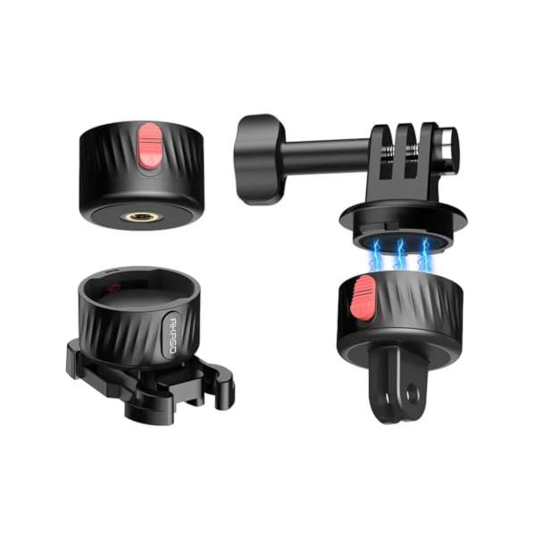 ・幅広い互換性クイックリリースアクセサリーは、ほとんどのアクションカメラと互換性があります。GoPro Hero12 11 10 9/DJI Osmo Action/insta 360などのアクションカメラに対応。1/4ネジ穴ベースは1/4ネジ付き三脚、自撮り棒、スーパークランプ、ハンドルなどのアクセサリーに使用できます。