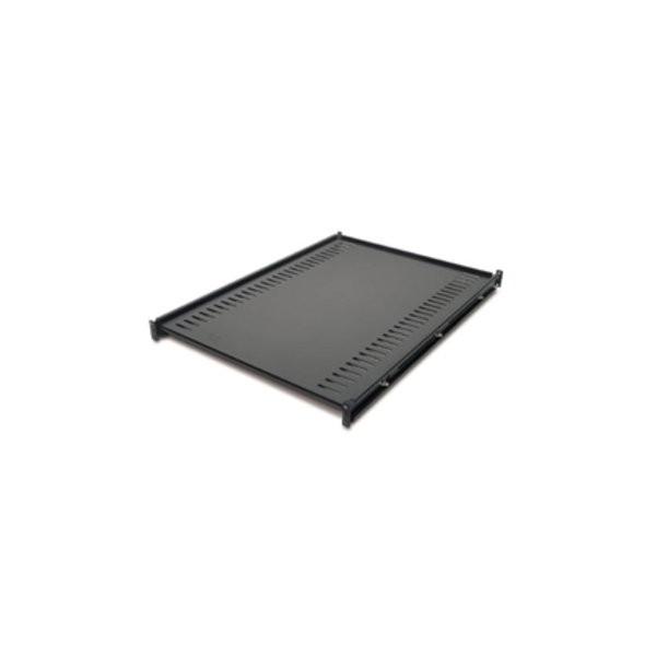 - 前後19インチマウントレールに設置可能な固定棚ブラックカラー。最大荷重114kg。取付レール付属。前後マウントレールの距離は710〜830mm対応オフィス家具 デスク