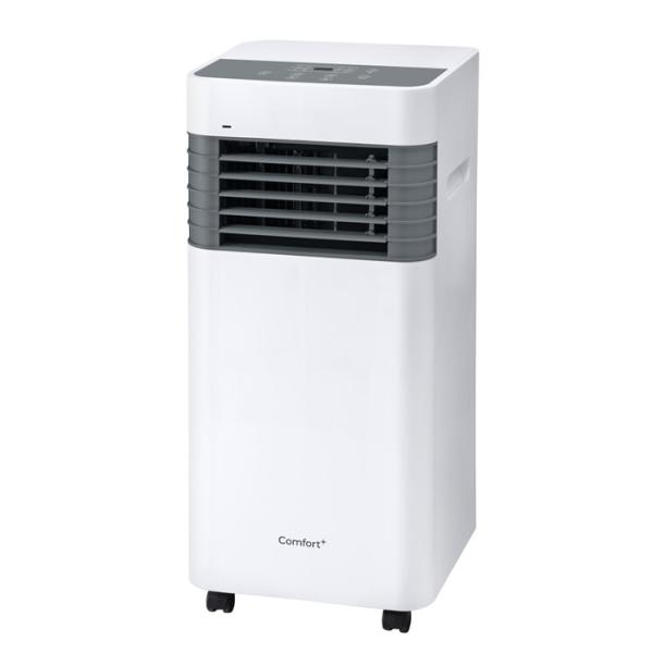 - クマザキエイム 移動式エアコン スポットエアクーラー Comfort+ SC-K2535WGの特徴 ■工事不要!どこでも置ける コンパクトサイズの移動式エアコン ■電気代 1時間あたり14円の省エネタイプ! どこでも置けるコンパクトサイズのスポットクーラーです。 面倒な工事は一切不要で手軽に使用することができます。 冷風・送風・除湿の3役をこなす多機能モデル。 排気を屋外に放出するためのアタッチメントも付属。 快適な空間づくりをサポートします。 ■冷風、送風、除湿モード搭載 シーンに合わせてお使いいただけます。 ■設定した温度に合わせ自動でオン/オフ 手間なく快適な温度に調整します ■24時間まで設定可能なオン/オフタイマー機能 1時間単位で設定可能。節電にも。 ■キャスター付きでお部屋間の移動もラクラク ちょっと使いたい時にも便利です。 ■排気ダクトと窓パネルを使い背面から出る排熱を室外へ逃がすことができます。 アタッチメントが全て標準付属しています。 ■商品名 移動式薄型送風扇「Air Force Fan」 ■外形寸法 幅26.5×奥行28×高さ58cm ■質量(約) 約15.5kg ■材質 ABS、アルミ ■電源 AC100V 50/60Hz ■冷房消費電力 50Hz/410W、60W/450W ■1時間あたりの電気代 約14.0円(450W連続運転時) ■運転電流 50Hz/4.36A、60Hz/4.8A ■運転モード 自動運転、冷風、除湿、送風 ■風量 2段階切替(強/弱) ■冷房能力 50Hz/0.8kW、60Hz/0.88kW ■コード長 約1.8m ■タイマー設定 オン/オフ(1~24時間) ■最大除湿能力 8L/日 ■タイマー設定 オン/オフ(1~24時間) ■運転音 約55dB(冷風モード風量「強」) ■冷媒 R134a/160g ■運転音 約55dB(冷風モード風量「強」) ■排水タンク容量 約120mL(満水時自動停止) ■排気ホース 直径13×長さ24~160cm ■排水ホース 直径0.9×長さ100cm ■セット内容 本体、排気ホース、ノズル、ジョイント、パネル(A×1·B×2·C×1)、排水ホース、リモコン(CR2025電池内蔵)、パネル固定用金具(固定金具·ワッシャ·蝶ナット×各3)、 補助鍵、取扱説明書(保証書付き) ■関連キーワード スポットクーラー 小型 スポットクーラー 家庭用 スポットクーラー ノンドレン スポットクーラー 排熱なし スポットエアコン スポットエアコン 家庭用 エアコン スポット ■関連商品はこちら スターディスポットクーラーPR PSC-32 スタディスポットクーラーPR(自動首振り機能付き) PSC-32J 冷暖スタディスポットクーラーPRPMSC-32J スタディスポットクーラー(自動首振り) D410-SC スタディスポットクーラーD410-A