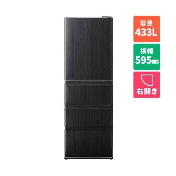 アクア(AQUA) AQR-V43R-K ウッドブラック DELIE+ 4ドア冷蔵庫 右開き 433L 幅595mm