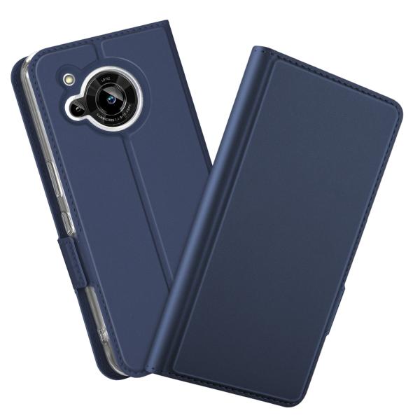 アクオスR7 スマホケース 手帳型ケース カバー AQUOS R7 SH-52C マグネット 定期入れ ポケット シンプル スマホケース ネイビーブルー