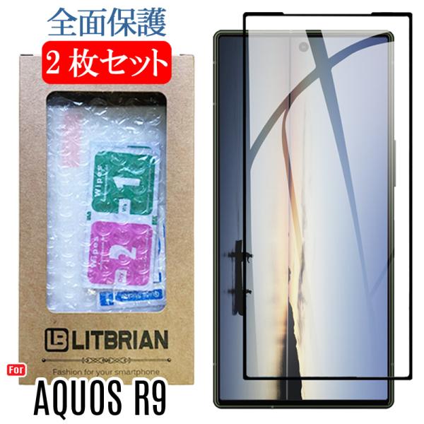 2枚セット 全面保護 AQUOS R9 ガラスフィルム 黒フレーム 強化ガラス素材 高透明 自動吸着 気泡レス 爆買