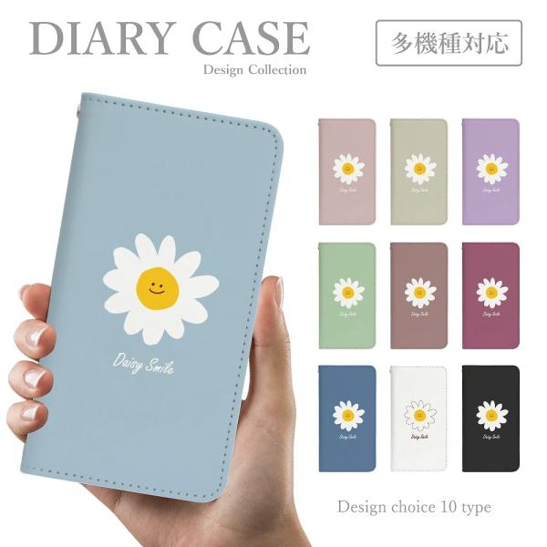 スマホケース AQUOS sense2 SHV43 手帳型 韓国 可愛い デイジー スマイル お花 くすみカラー