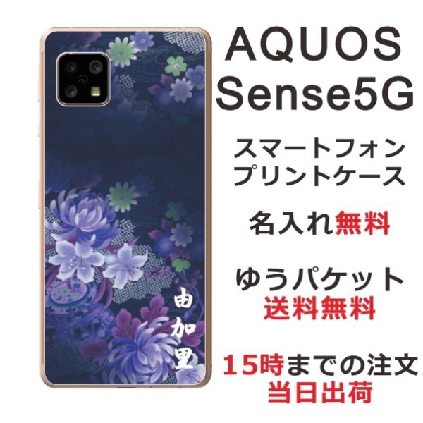AQUOS Sense5G SH-53A SHG03 アクオスセンス5G らふら 名入れ スマホケース 和柄 和花青紫グラデ