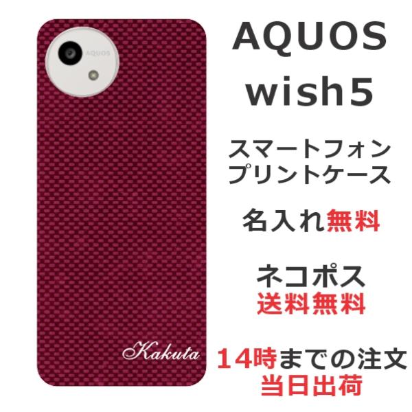 AQUOS wish5 アクオスウィッシュ5 SH-52F A502SH らふら 名入れ スマホケース カーボン レッド