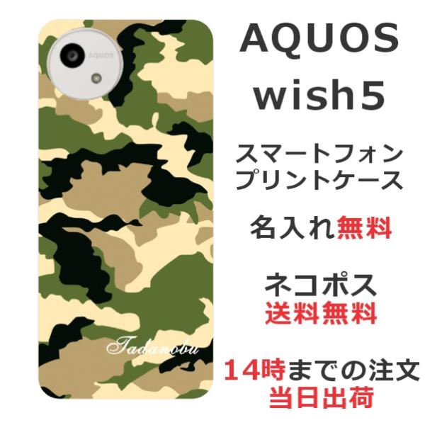 AQUOS wish5 アクオスウィッシュ5 SH-52F A502SH らふら 名入れ スマホケース 迷彩 グリーン