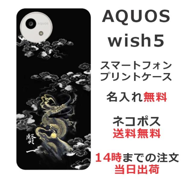 AQUOS wish5 アクオスウィッシュ5 SH-52F A502SH らふら 名入れ スマホケース 和柄 漆黒雲海龍