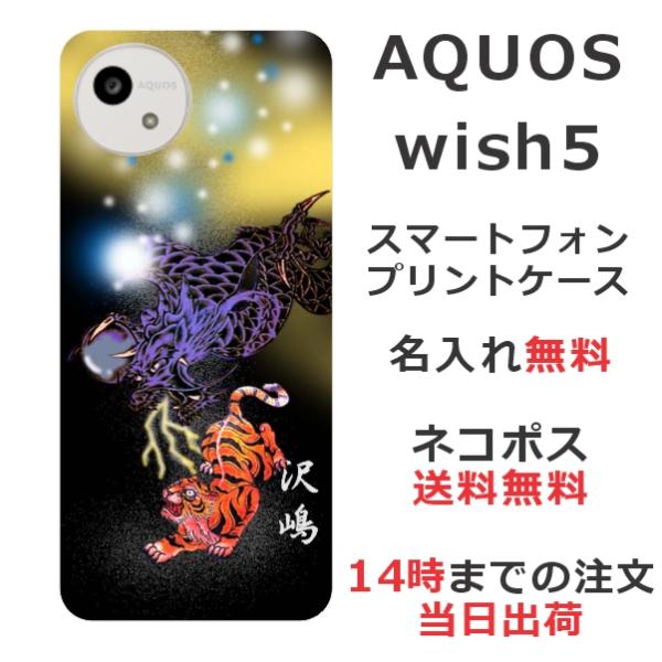 AQUOS wish5 アクオスウィッシュ5 SH-52F A502SH らふら 名入れ スマホケース 和柄 虎龍