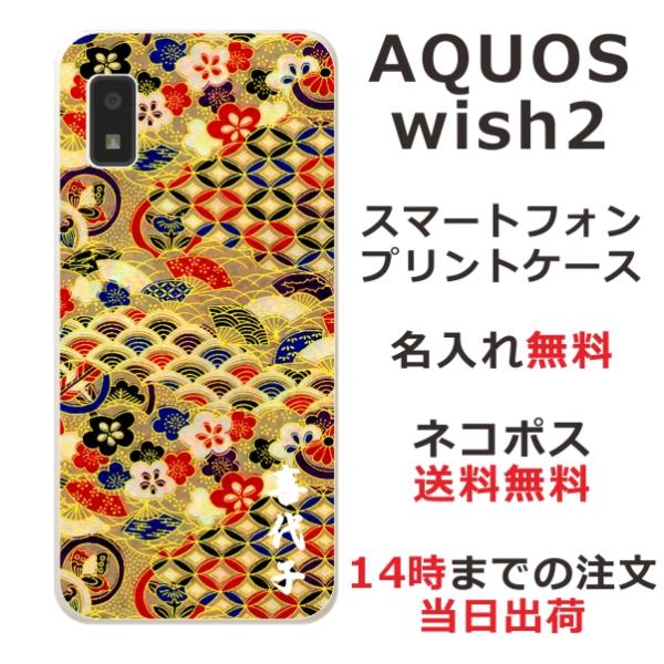 AQUOS Wish2 SH-51C SH-M20 アクオスウィッシュ2 らふら 名入れ スマホケース 和柄 千代紙ゴールド