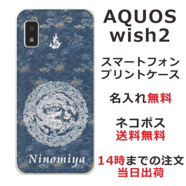 AQUOS Wish2 アクオスウィッシュ2 SH-51C SH-M20 らふら 名入れ スマホケース 和柄 円龍深青