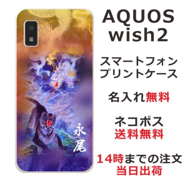 AQUOS Wish2 アクオスウィッシュ2 SH-51C SH-M20 らふら 名入れ スマホケース 和柄 龍虎蒼橙