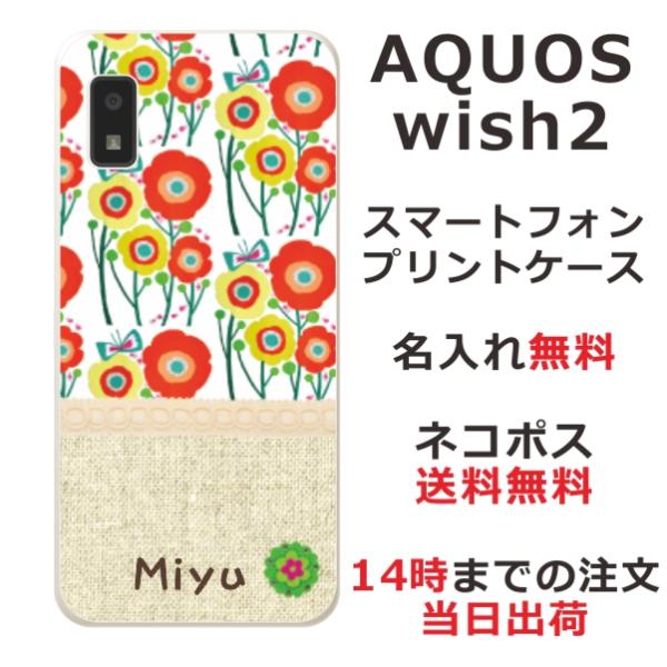 AQUOS Wish2 アクオスウィッシュ2 SH-51C SH-M20 らふら 名入れ スマホケース 北欧デザイン フラワー オレンジ